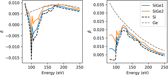 Optical constants for 2 variants of silicon-germanium (SiGe) from 80 eV - 250 eV