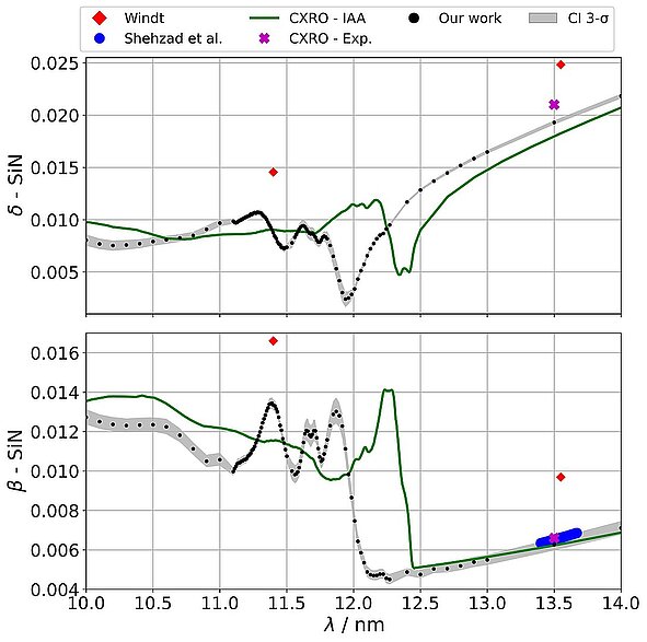 Datasets full citation: Q. Saadeh, V. Philipsen, J. Meersschaut, V. S. K. Channam, K.-A. Kantre, A. Sokolov, B. Kupper, T. Wiesner, D. O. García, Z. Salami, C. Buchholz, F. Scholze, and V. Soltwisch, "Optical constants of TiN, amorphous SiO2, and SiN in the extreme ultraviolet range," Appl. Opt. 63(36), 9210-9222 (2024).